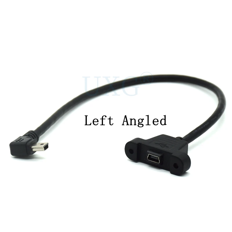 Cable adaptador de extensión Mini USB de 5 pines macho a hembra tipo montaje en panel con tornillos de 50 cmTipo de montaje en panelDistancia de los tornillos: 28,00 mm4 cables conectados en el interior.Longitud: 0,3 m