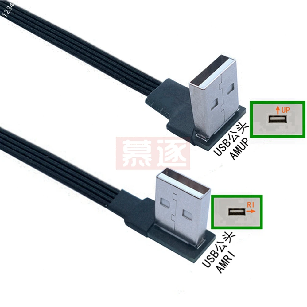 Comprar Cable adaptador de extensión Super plano y flexible, USB 2,0 A macho A hembra, 90 en ángulo, macho A hembra, derecha, izquierda, abajo y arriba