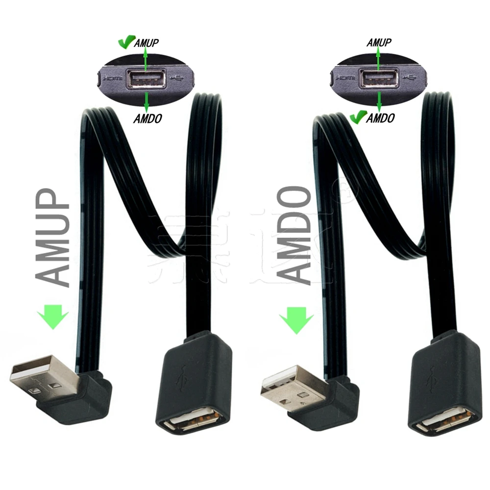 Comprar Cable adaptador de extensión USB 2,0 A macho A hembra 90 en ángulo, USB 2,0 macho A hembra, cable negro derecho/izquierdo/descendente/arriba