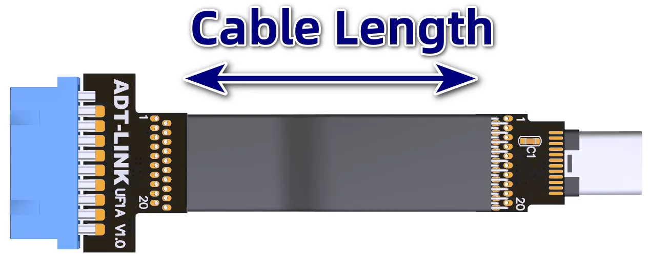 La longitud del cable en nuestra tienda se refiere a la parte del cable visual, excluyendo PCB y conector.Consulte la marca de tamaño de la línea de flecha azul con una longitud de 5 cm en la siguiente figura.
