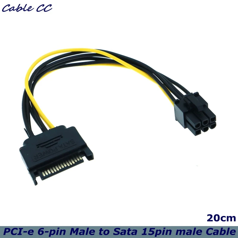 Comprar Cable adaptador de fuente de alimentación para tarjeta de vídeo, de 20cm Cable de alimentación, 15 Pines, SATA a 8 pines, PCI-E, 15 Pines, macho a 8 pines, 6 + 2