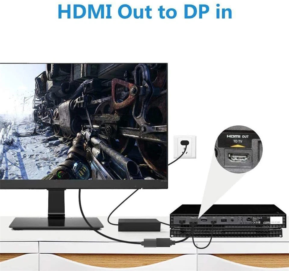 · Adaptador HDMI a DisplayPort: el cable HDMI a DisplayPort transmite señal de audio y video de alta definición desde sus dispositivos HDMI al monitor/pantalla DisplayPort para transmisión de video o juegos. Nota: Este NO es un adaptador bidireccional. NO lo use para la conversión de Displayport a HDMI.