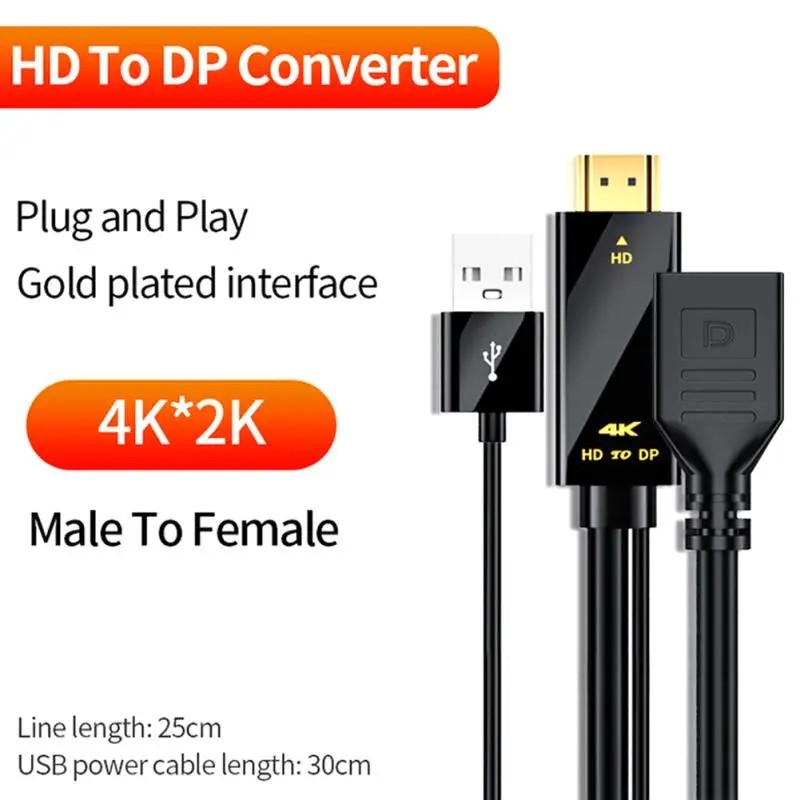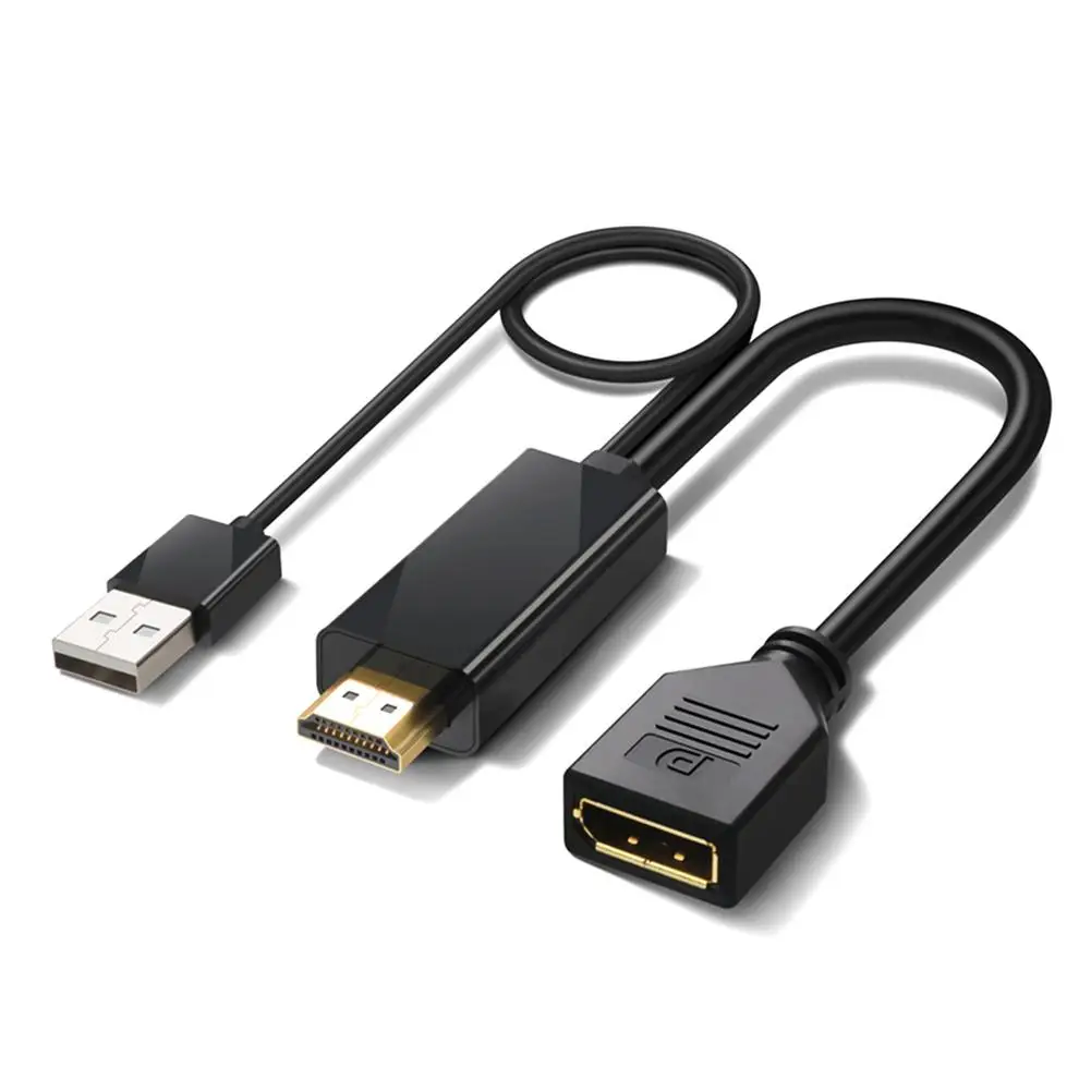 Comprar Cable adaptador HDTV a DP hembra, conector 4k 30hz, Compatible con HDMI a Displayport con fuente de alimentación, 0,3 metros