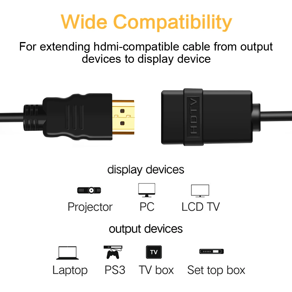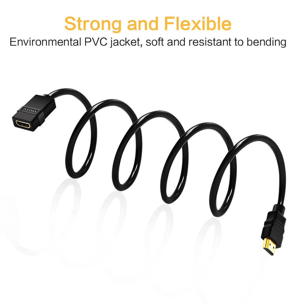 Comprar Cable adaptador hembra HD a HD compatible con HDMI Cable de extensión de ángulo recto macho a HD AF 1m 2m