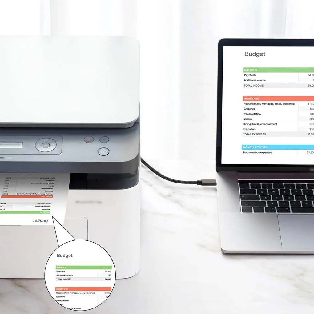 Plug-In: Este cable de impresora es muy práctico de usar, simplemente conéctelo al puerto y luego puede operar el dispositivo.