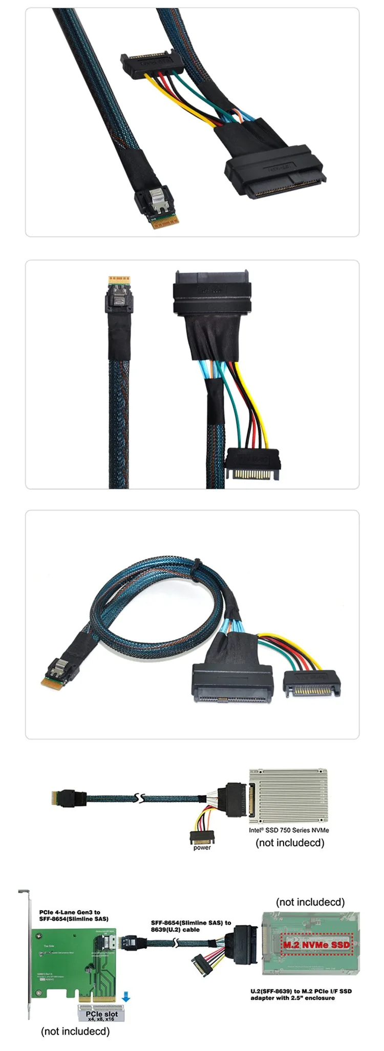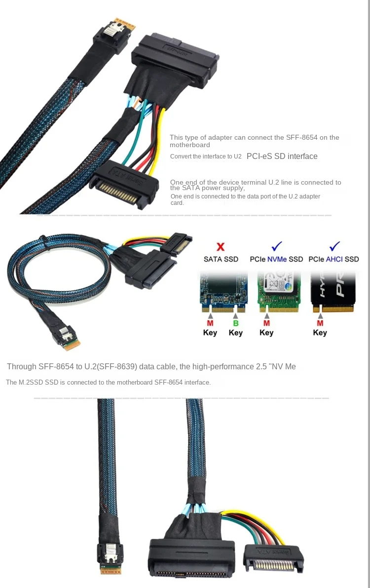 Comprar Cable adaptador de interfaz Spot U2 conectado a NVMESSD, SFF-8654 Slim SAS a SFF-8639