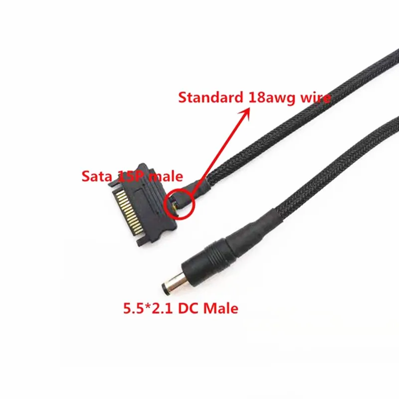 Comprar Cable adaptador macho Sata de 15 pines a CC de 5,5x2,1mm, Cable-20cm de alimentación HDD, 18awg, 1007