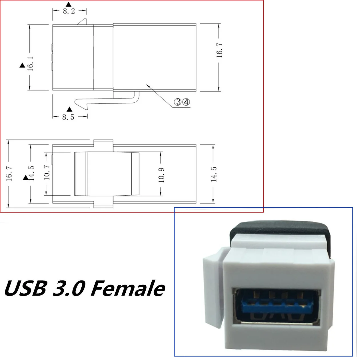 Comprar Cable adaptador de montaje en Panel Keystone USB 3,0 para enchufe de pared, placa frontal, placa de pared, Cable conector de Panel de salida