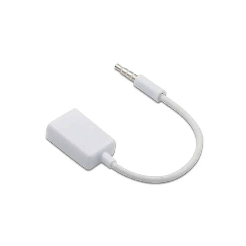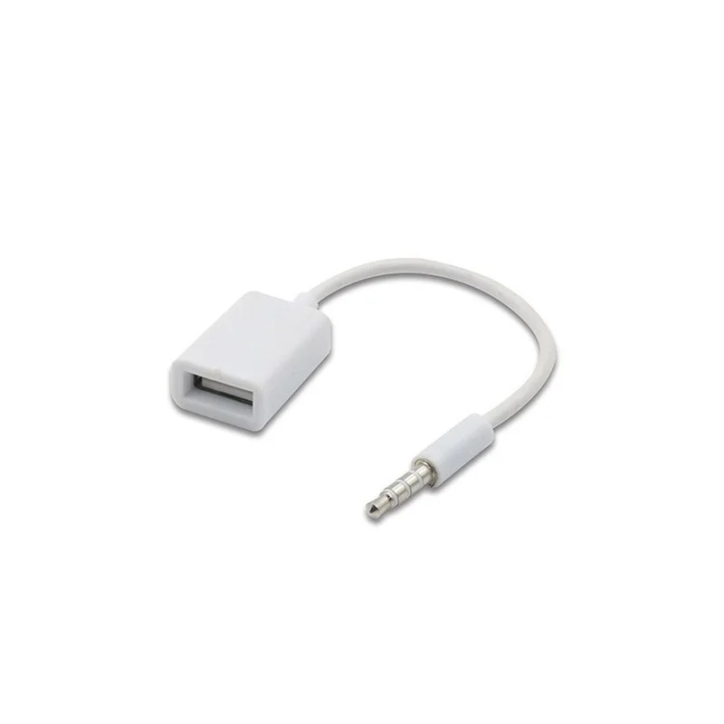 Cable adaptador de Mp3 para coche de 3,5 MM, USB hembra a disco U para conectar REPRODUCTOR DE CD de coche de 12V, Cable de Audio auxiliar para coche, longitud de 14,5 cm Nombre del producto: cable adaptador hembra de 3,5mm a USB Interfaz del producto: 3,5 MM Longitud total del producto: aproximadamente 14,5 cm Color del producto: blanco Material del producto: PVC + material de anidación ABS + molde interior Doble Peso del producto: 6 gramos Función del producto: el enchufe de 3,5mm del cable está conectado a la interfaz de audio AUX del coche, y el otro extremo del USB está conectado al disco U. Haz que el coche Reproduzca canciones del disco U. La calidad del sonido es pura y limpia al reproducir música.
