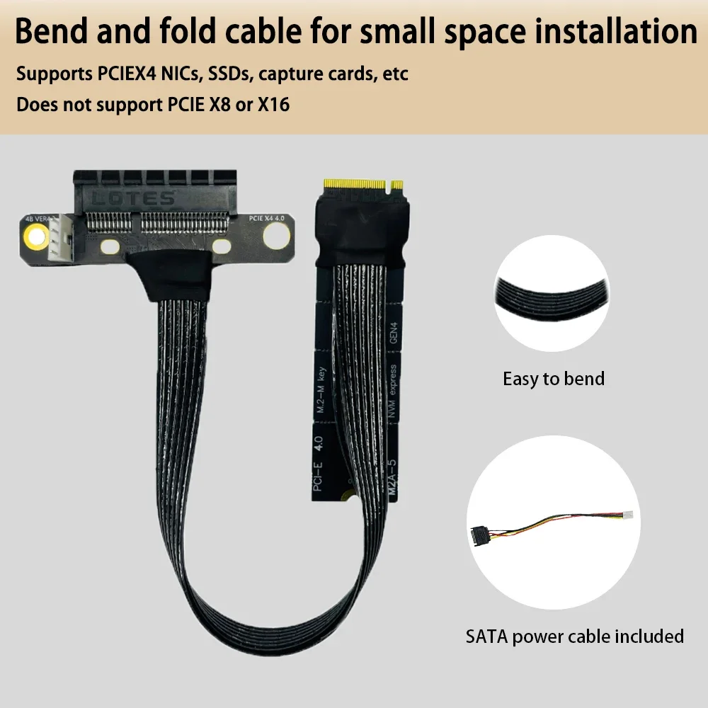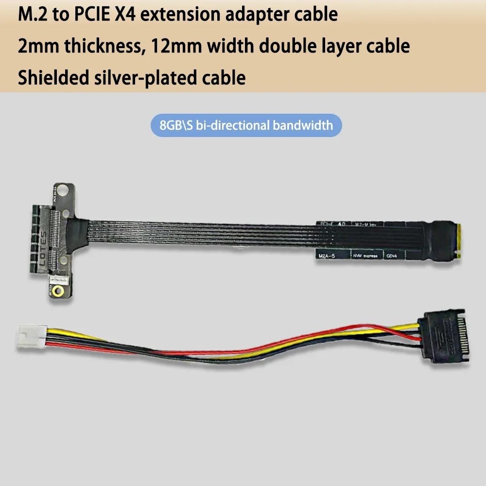 Comprar Cable adaptador de ordenador de alta velocidad M.2 NVMe a PCI-E 4,0 X4, Cable plateado blindado GEN4 NVME MKEY M.2 SSD extensor de 4 pines SATA