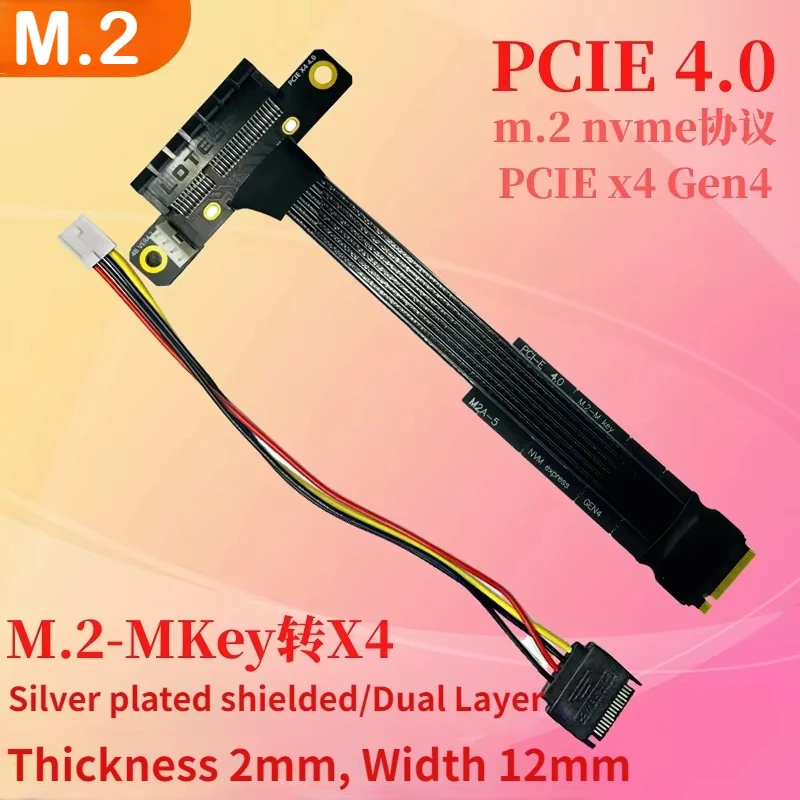 Comprar Cable adaptador de ordenador de alta velocidad M.2 NVMe a PCI-E 4,0 X4, Cable plateado blindado GEN4 NVME MKEY M.2 SSD extensor de 4 pines SATA