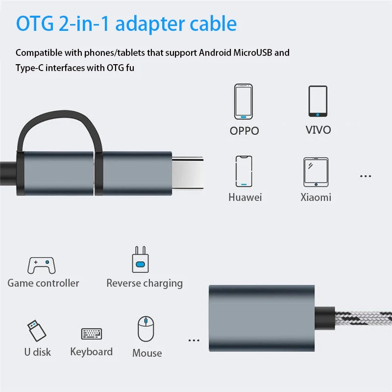 Cable adaptador OTG tipo C 2 en 1 para Samsung S10 S10 Xiaomi Mi 9 Android MacBook Mouse Gamepad Tablet PC tipo C Cable USB OTG