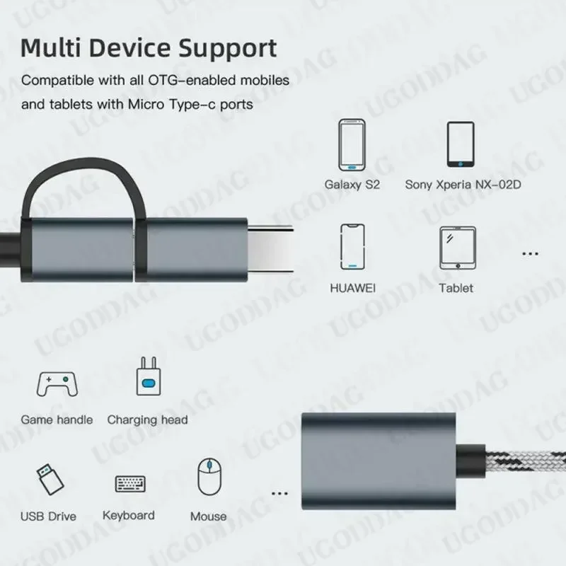 1. Este adaptador tipo Micro USB tipo C a USB 3,0 es compatible con la mayoría de los teléfonos inteligentes, fácil y cómodo de usar.