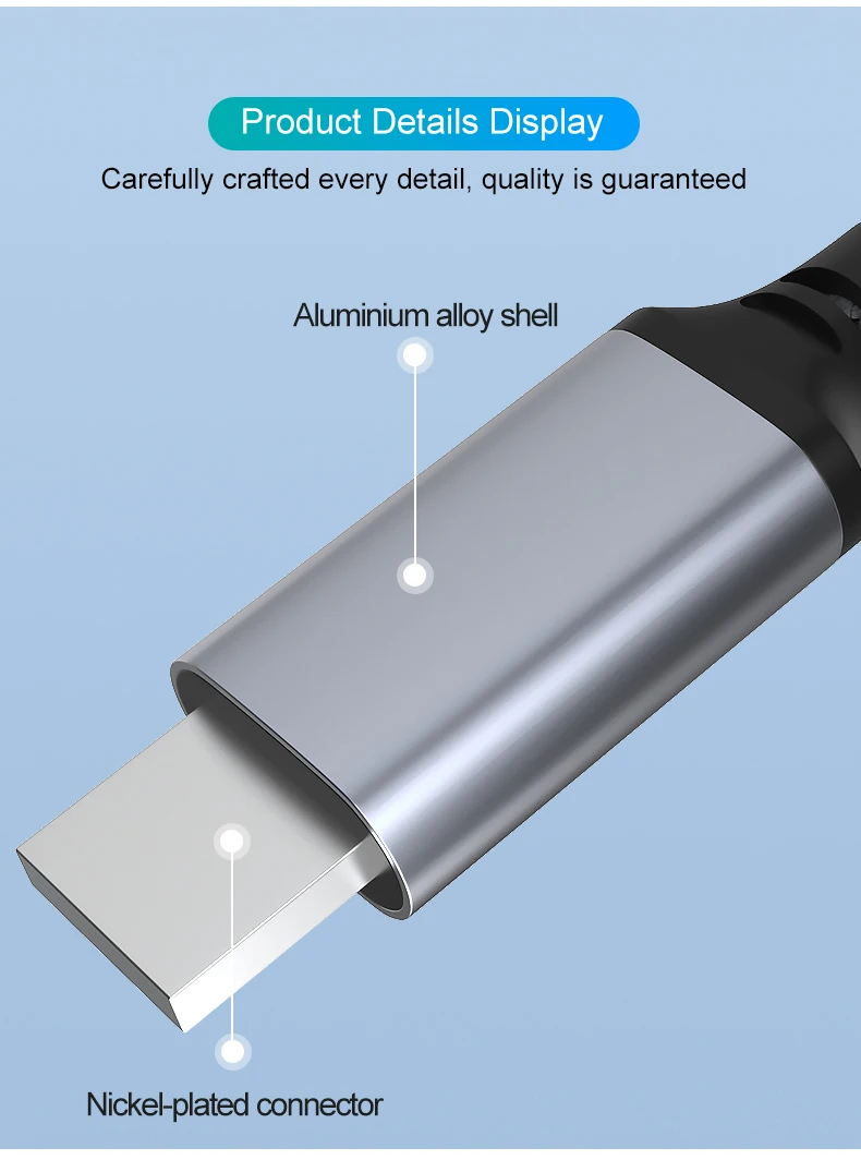 Material del producto -- carcasa de aleación de aluminio + TPE + tapón chapado en oro + nailon y doble tejido de red