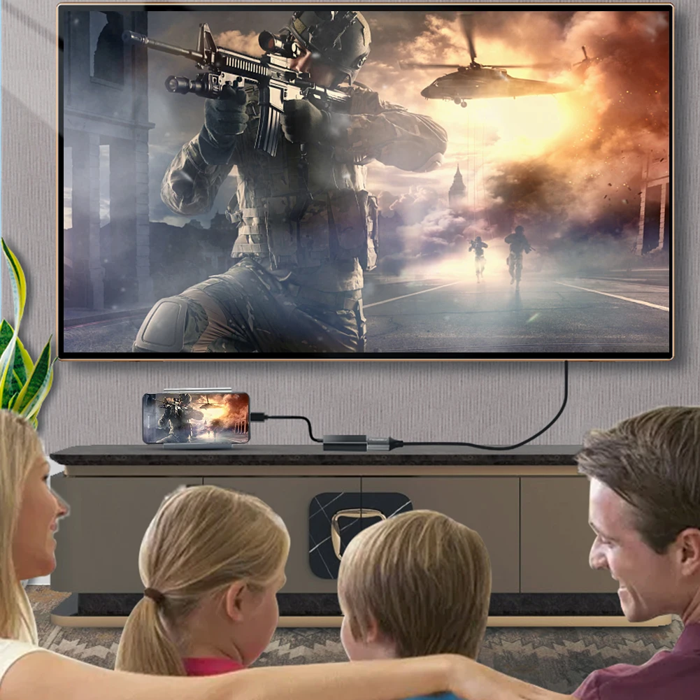 Notas: Para utilizar la conexión del teléfono móvil, debe activar la función de depuración USB en la configuración del teléfono móvil.El televisor se inserta en el puerto HD y el HD seleccionado en la pantalla del televisor es el mismo. Debido a los diferentes monitores y efectos de la luz, el color real del artículo puede ser ligeramente diferente al color mostrado en las imágenes.¡Gracias! Permita una desviación de medición de 1-2 cm debido a la medición manual.
