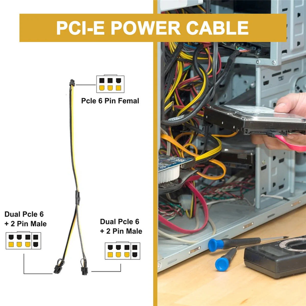 Comprar Cable adaptador PCI-E PCIE de 10 piezas, 6 pines a 8 pines duales, 6 + 2 pines, Cable de alimentación de vídeo GPU para minería, 16AWG + 18awg