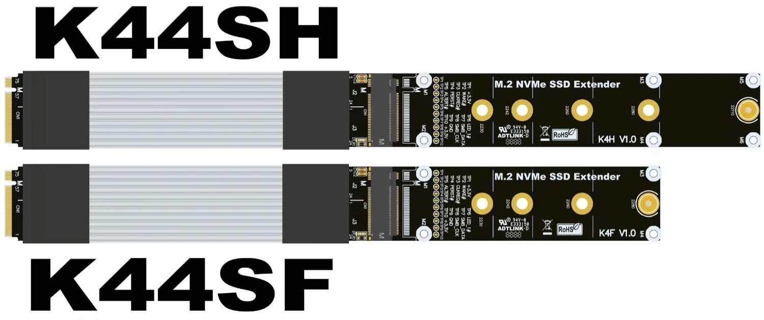 Nota:R44SF admite PCIe4.0, degradación de señal con cables de extensión.ModeloClarificaciónAnchos de bandaK44SFEl cable de extensión NVMe M. 2 a M2 NVMe admite SSD de tamaño 2280PCIe 4.0x4K44SHEl cable de extensión NVMe M. 2 NVMe a M2 admite SSD de tamaño 22110PCIe 4.0x4