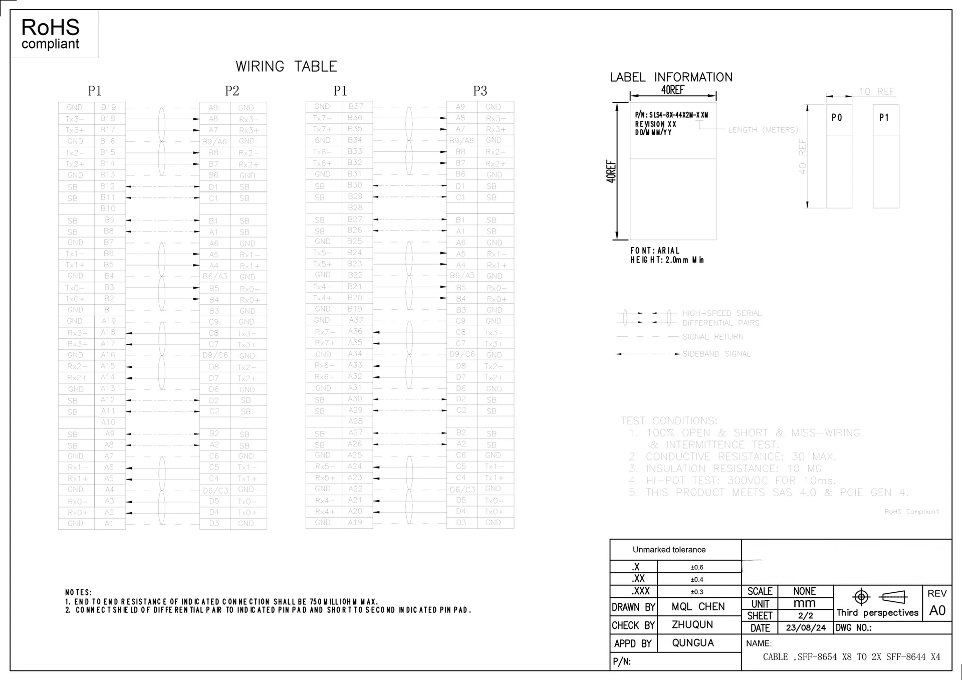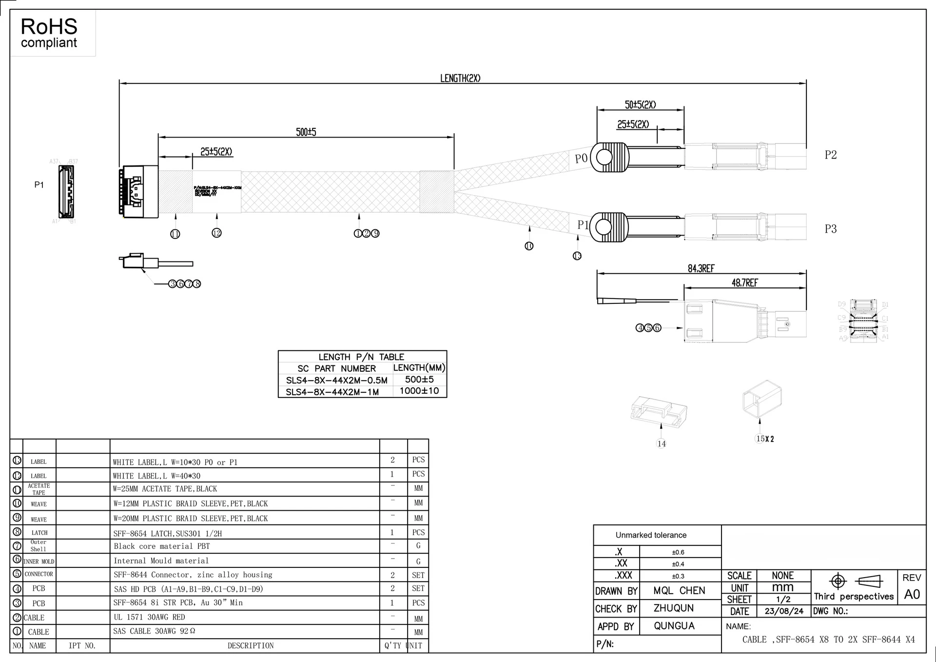 Cable adaptador PCIe Slimline SFF-8654 8I a 2 SAS HD 8644 para paquete de cableado interno de servidor con conector en ángulo de cobertura total