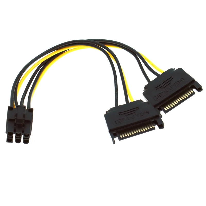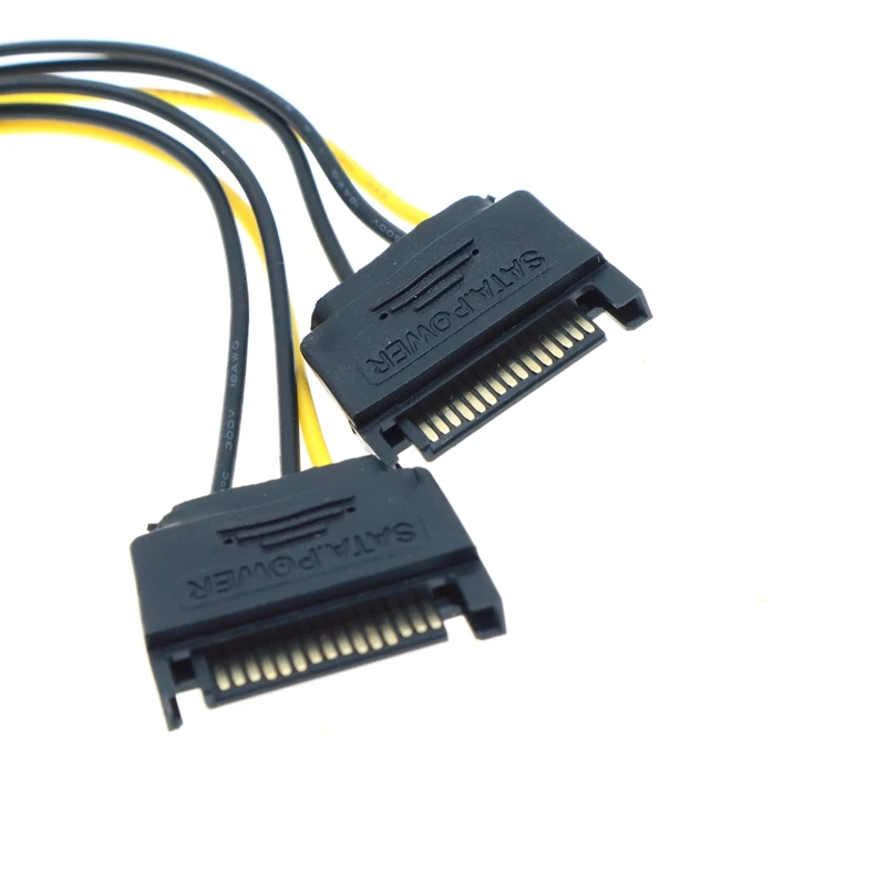 * This is a Dual 15Pin SATA Male To PCIe 8Pin(6+2) Male Video Card Power Cable.