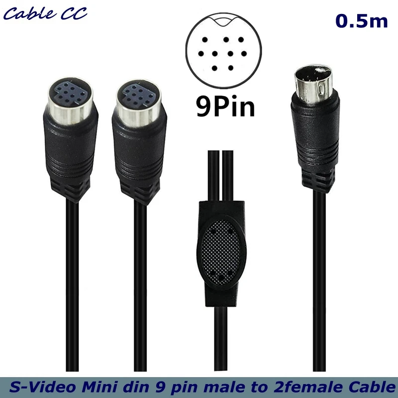 Comprar Cable adaptador S-video Mini DIN 9 pines divisor macho a 2 hembraY de 0,5 m, para DVR/PVR, Cable de decodificador de Audio/Video DVD