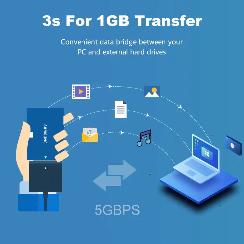 El adaptador de disco duro externo admite transferencia de datos de hasta 5 Gbps. AHORRE TIEMPO CON UASP: Este adaptador SATA a USB es compatible con la tecnología UASP, que es un 70% más rápido que el USB 3,0 tradicional y una reducción del 80% en los recursos requeridos del procesador, compatible con USB 2,0/1,1.