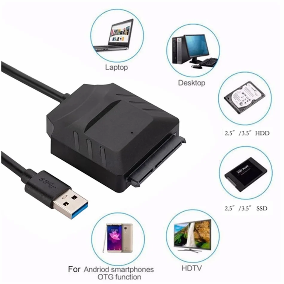 Cable adaptador SATA a USB 3,0 Cable USB a SATA 3, compatible con 22 pines, 2,5 3,5 pulgadas, HDD externo, conector de ordenador de disco duro SSD compatible