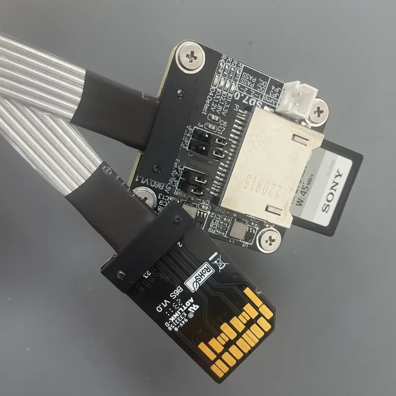 El cable es un cable dedicado SD de alta velocidad con un grosor de 1,4mm. Fuerte y duradero, por lo que el cable es más duro. La conexión entre la placa PCB y el cable no se puede doblar, y la sección central de otro cable se puede doblar y plegar, lo que no afecta el uso.