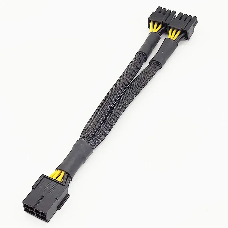 Comprar Cable adaptador trenzado Y Splitter GPU de 20cm, PCIe, 8 pines, hembra a Dual, 2x8 pines (6 + 2), macho, PCI Express, Cable de extensión de adaptador de corriente