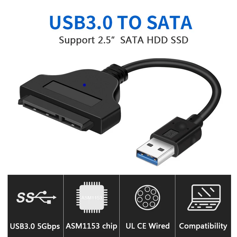 Nuevo USB 3,0 a SATA Cable adaptador Cable 22pin SATAIII SATA3.0 USB3.0 a SATA 3 adaptadores ASM1053e Chip para 2,5 "SATA HDD SSD