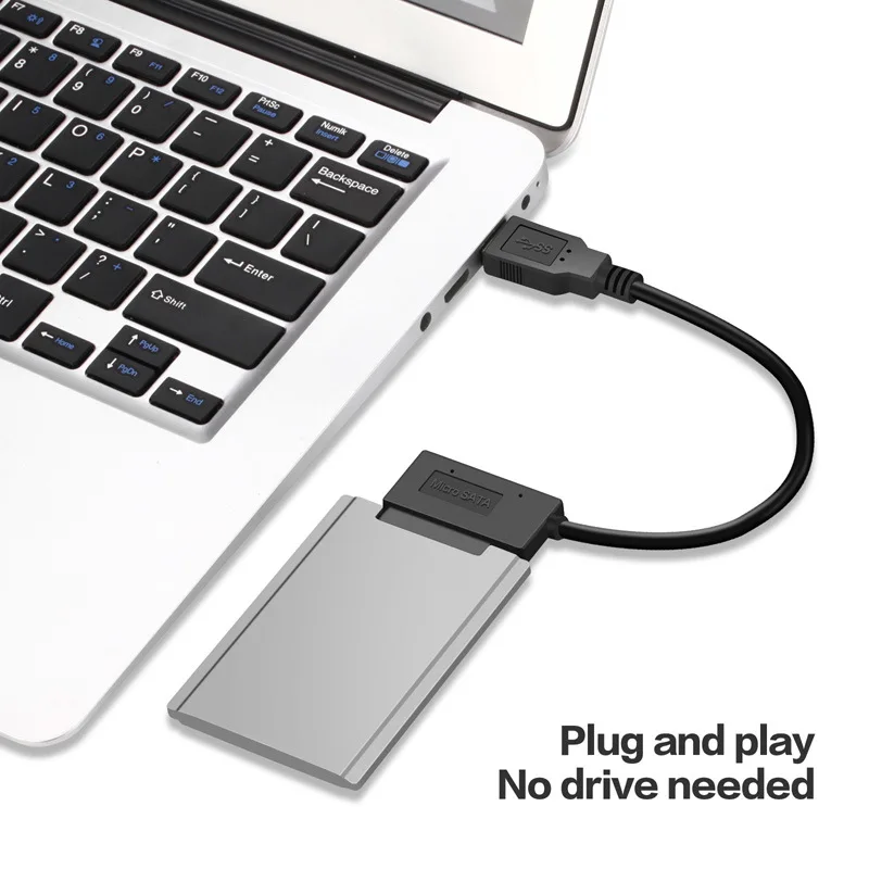 El convertidor de disco duro USB3.0 a Micro SATA de 16 pines le permite contactar con cualquier disco duro SATA estándar de 1,8 "a su computadora a través del puerto USB 3,0 a una velocidad de hasta 5Gbps. Es ideal para hacer copias de seguridad de archivos o actualizar el disco duro de su portátil.