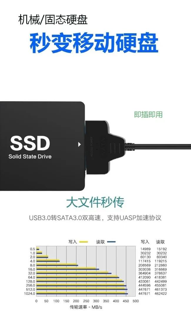 1. Conectar al ordenador: los cables conectores USB 2,0 y USB3.0 a SATA 15 + 7 pines le permiten conectar cualquier funda móvil SATA HDD estándar de 2,5 "o 3,5" a su ordenador a través del puerto USB a velocidades de hasta 480Mbps/portátil.