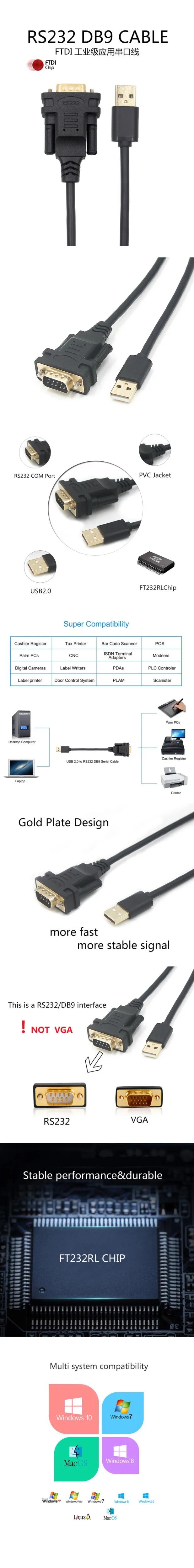 Comprar Cable adaptador USB a serie RS232 DB9, conector macho, Chip FTDI negro, 6 pies, compatible con Win10/8/7/XP/Android/Mac/Linux