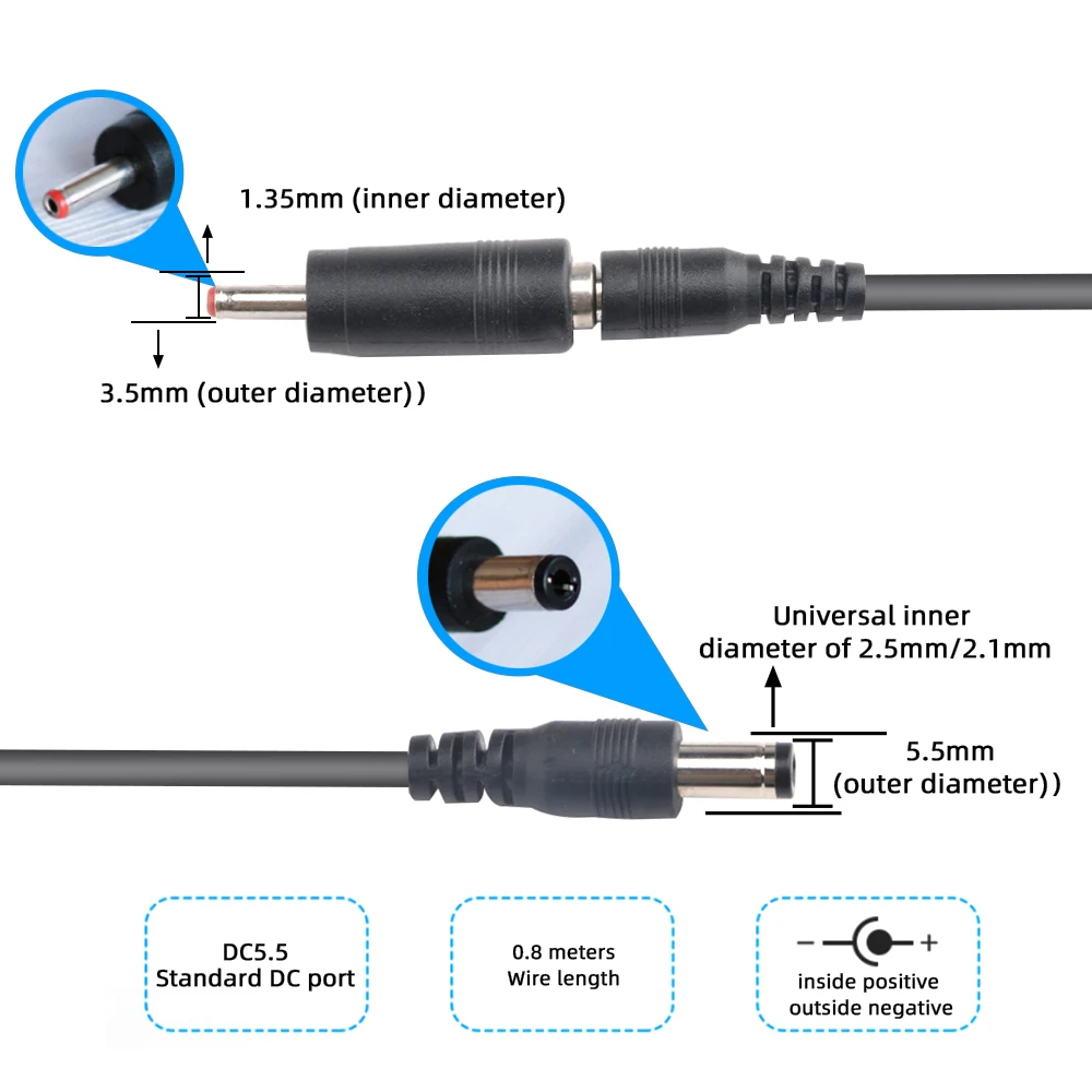 Dc3.5 mm Especificación de la interfaz: diámetro exterior 3,5mm, diámetro interior 1,35mm