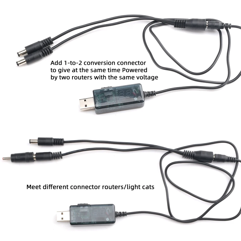 Comprar Cable adaptador USB DC de 5V a DC de 12V, convertidor de aumento macho para enrutador 95, cable de refuerzo de 5,5x2,1mm, 3,5x1,35mm, puerto de CC de doble enchufe