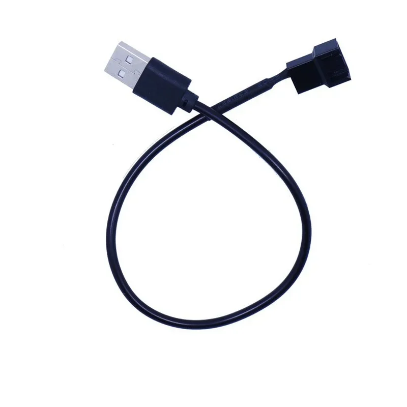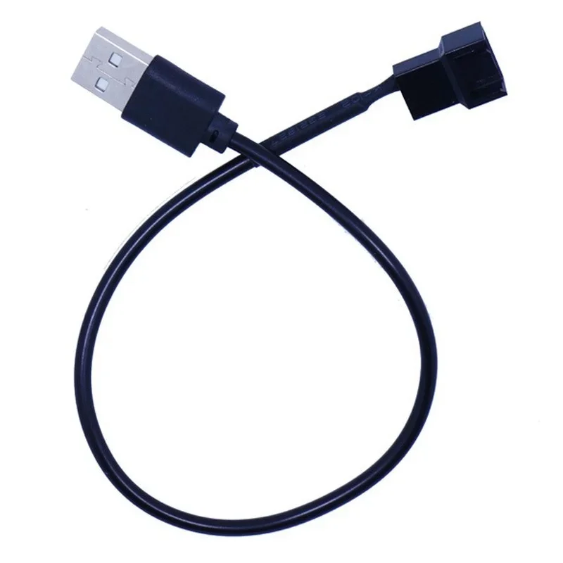 Tipo de conector: un extremo es una interfaz USB de computadora, y el otro extremo es un conector de ventilador de chasis de 4 pines de dos cables.