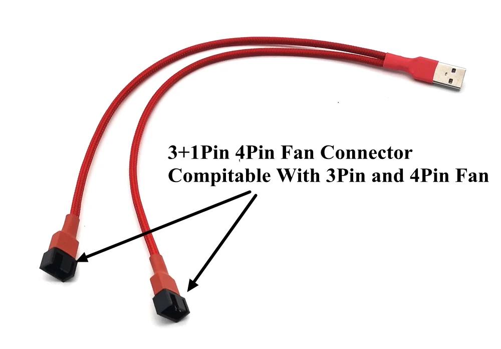 1 cable adaptador de corriente USB a doble ventilador de 4 pines.