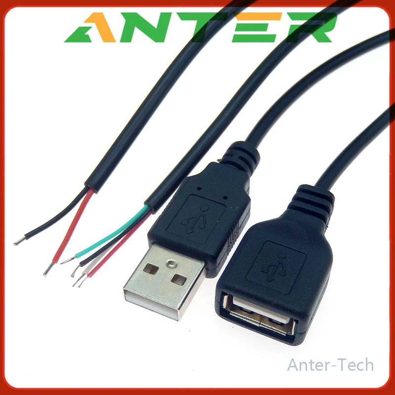 Comprar Cable de alimentación de 30cm, 2 pines USB 2,0 A hembra macho, conector de Cable de 4 pines, Cable de carga, conector de extensión DIY, línea de 5V