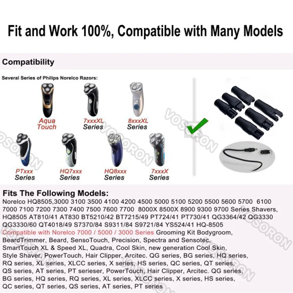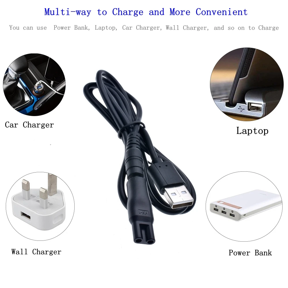 Juego de 8 piezas: 6 cabezales de carga de diferentes formas son adecuados para varias interfaces de cortapelos eléctricos, cable DC 5V USB a 5,5x2,1 mm * 1,1 adaptador USB