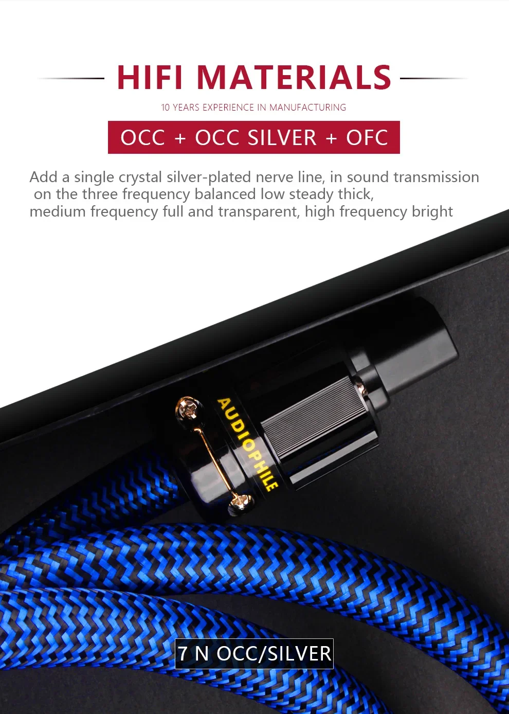 2.MATERIALES HIFI 10 AÑOS DE EXPERIENCIA EN OCC+PATA OCC+OFC ATENCIÓN MANUALIA Agregue una única línea nerviosa plateada de cristal, en transmisión de sonido las tres frecuencias balanceadas de bajo espesor constante, frecuencia media completa y transparente, alta frecuencia brillante