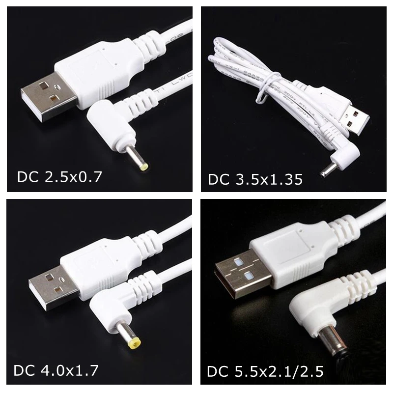 Comprar Cable de alimentación blanco USB 2,0 A macho A derecho, 90 grados, DC 3,5x1,35mm, 5,5x2,1, 5,5x2,5, 4,0x1,7, 5 voltios, 24AWG, 3 pies