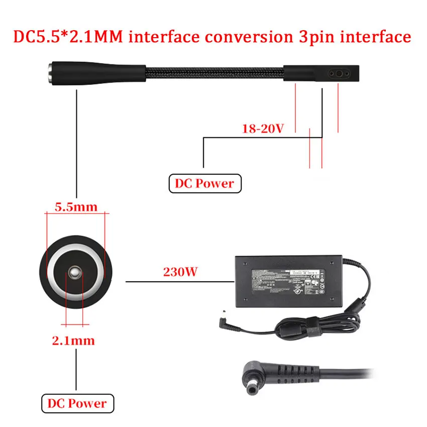 Cable de Alimentación de CC para Ordenador Portátil, Cable Hembra de Alimentación de 5,5x2,1mm, 5,5x2,5mm, 7,4x5,0mm, x mm