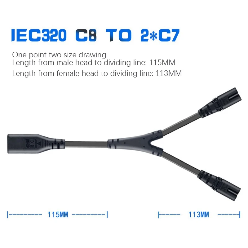 Comprar Cable de alimentación de CA dividido IEC320 C8 a 2X C7 Y, Cable de alimentación de CA de 1 en 2 salida, IEC figura 8 macho a 2 hembra