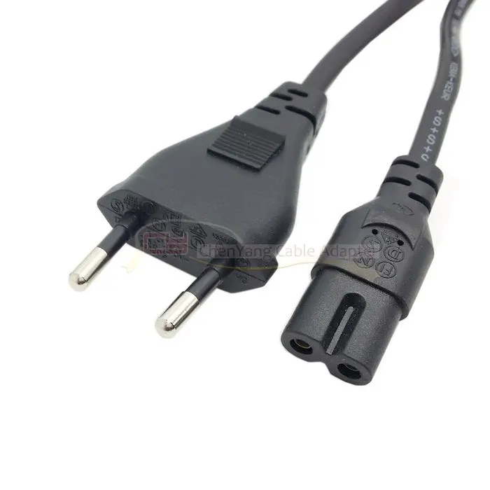 Comprar Cable de alimentación de CA europeo en ángulo recto, cable de 1M/2M/3M/5M, 2 clavijas EU a la figura 8 C7 para TV, impresoras, cámaras, PS4, nuevo PS3, etc.