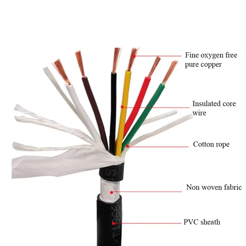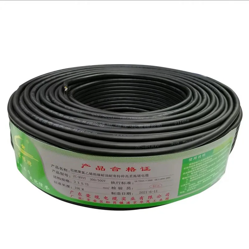 Cable de alta flexibilidad RVVY 2 3 4 5 6 7 8 pines 0,5/0,75/1,5/2,5 línea cuadrada resistente al aceite y a las heladas cadena de arrastre Cable de alimentación