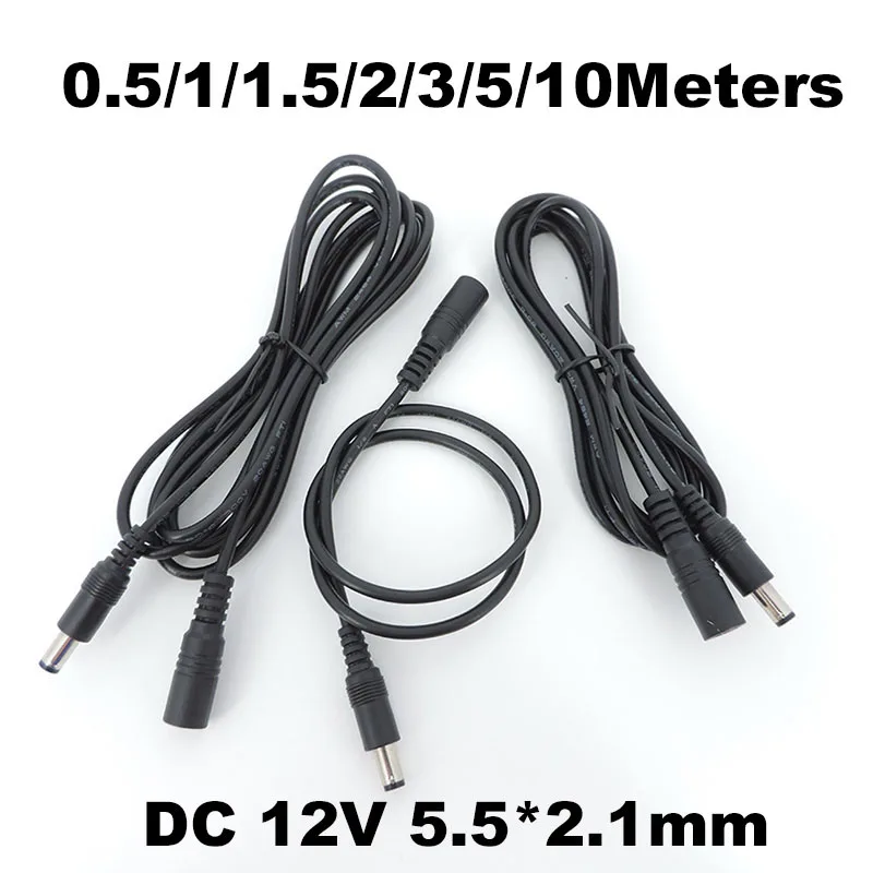 0,5 M/1,5 m 5m 10M DC hembra a macho 5A 20awg toma de alimentación Cable de alimentación conector de extensión Cable adaptador 5,5x2,1mm para tira