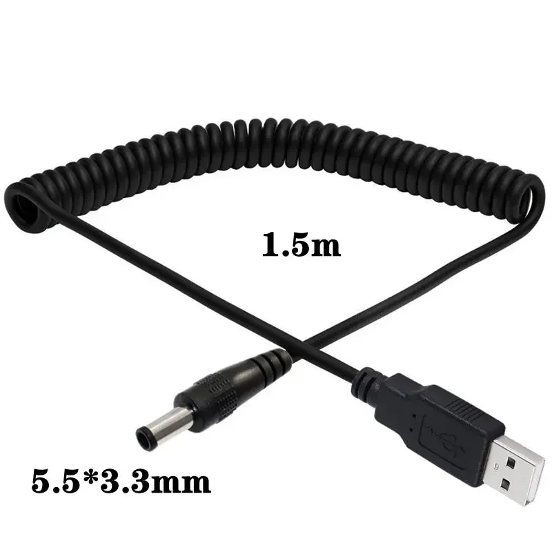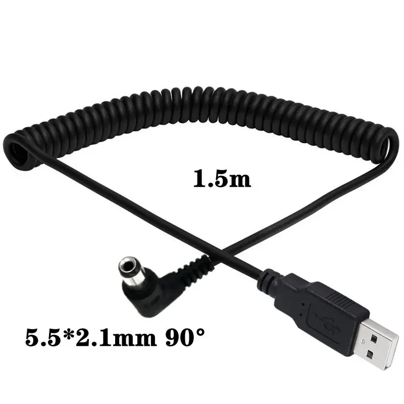 10: 1,5 metros/pie Cable de bobina de resorte de alimentación USB, USB2.0 A macho a toma de corriente CC 5,5mm x 2,1mm cable de bobina de resorte macho [cumple con 5V 2A]