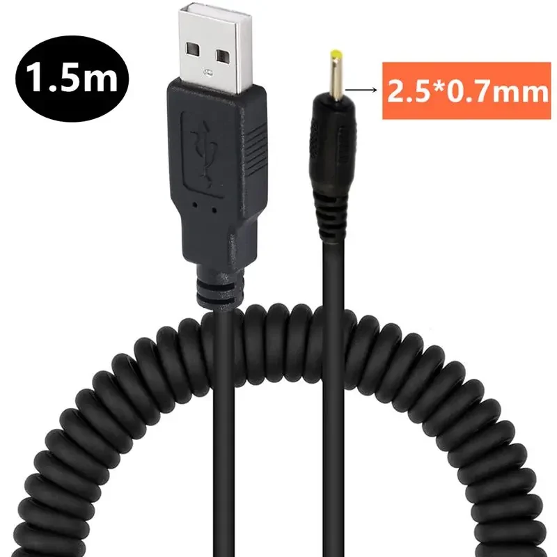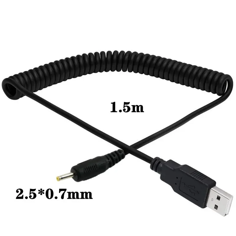 2: USB a DC2.5 * 0,7mm macho 5V2A cable de alimentación de corriente cable de carga cable USB Cable de resorte telescópico 1,5 m;