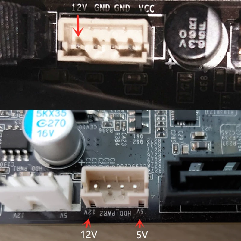 Secuencia de cables: 12V (amarillo)-GND (negro)-5V (rojo)