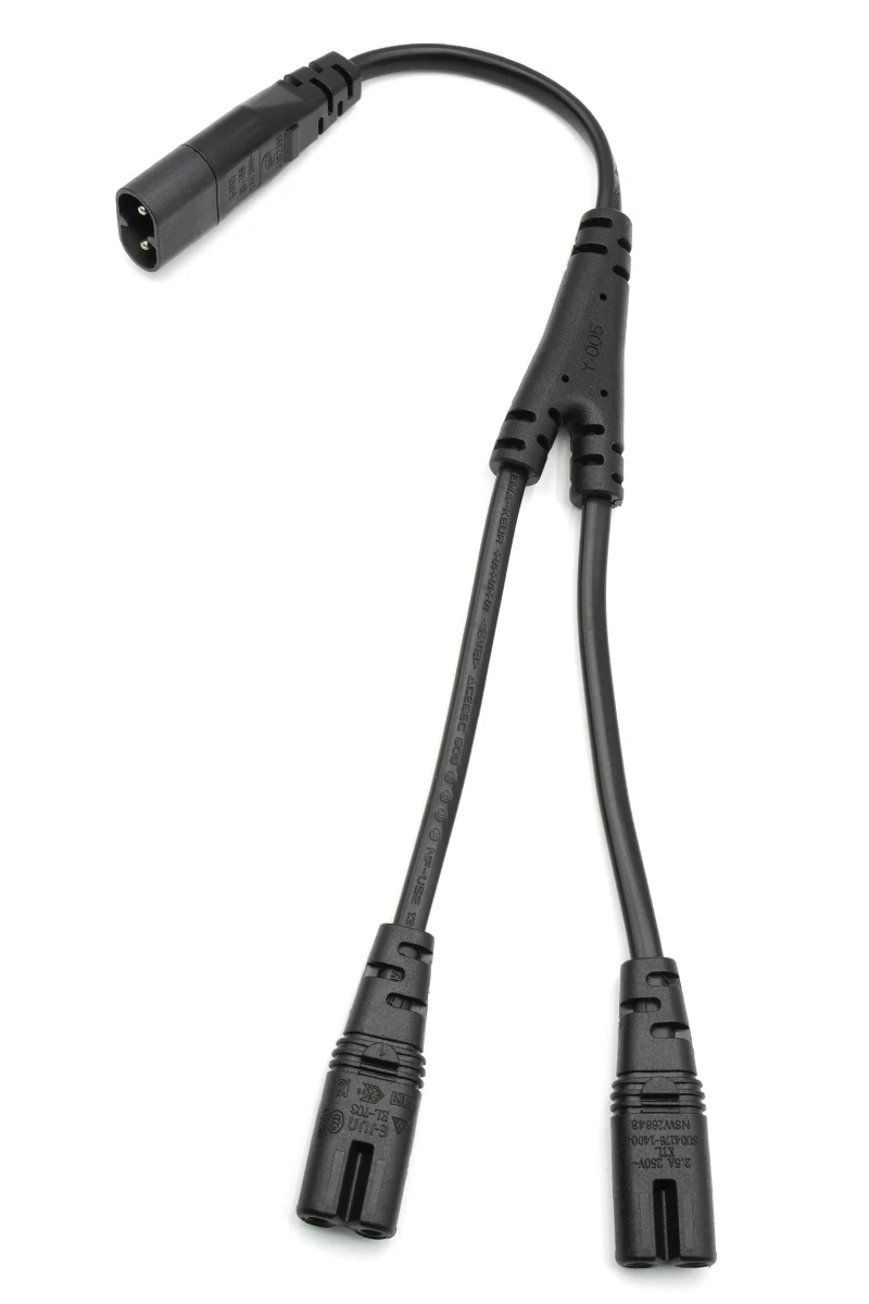 ▲Nombre del producto: Cable de alimentación dividido en Y de 2 pines C8 macho a 2 x C7 hembra
