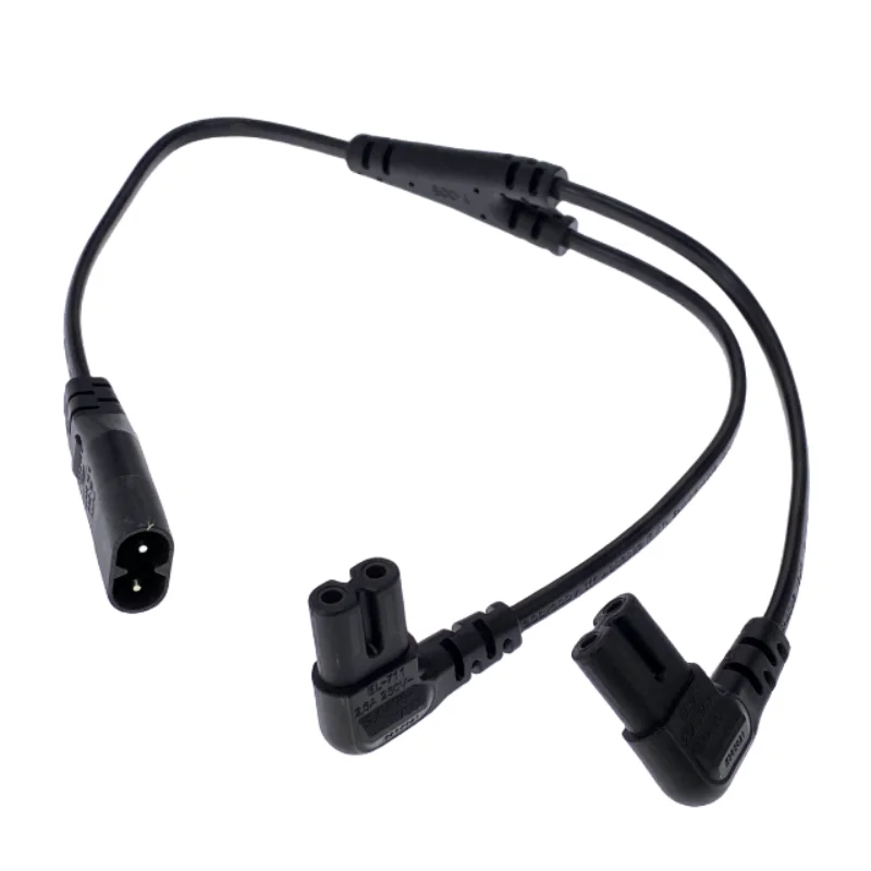 Comprar Cable de alimentación dividido Y hembra de ángulo recto IEC 320 C8 macho a doble C7, cable IEC de 2 pines figura 8 macho a 2 hembra de 30CM